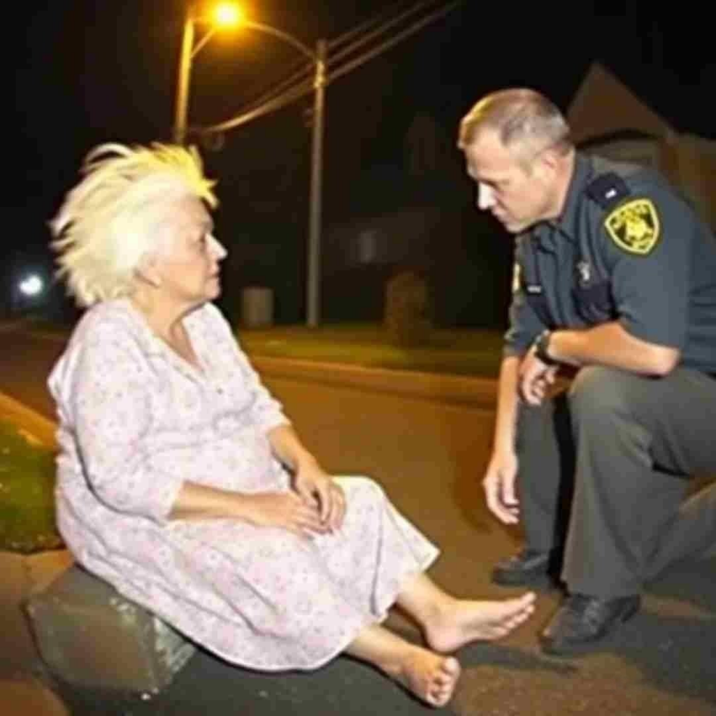 There, illuminated by the weak glow of the lamp, stood an 88-year-old woman in nothing but a thin cotton nightgown. Her hair was wild like she had been sleeping moments earlier. Her bare feet were pink from the cold pavement. And her eyes—wide, terrified, darting around like she was searching for a world she no longer recognized.