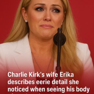 Erika Kirk has described the eerie detail she noticed when seeing her husband’s body after he was assassinated earlier this month. Kirk was killed while speaking at…