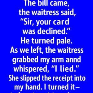 I was on a date. The bill came, the waitress said, ‘Sir, your card was declined.’ He turned pale. As we left, the waitress grabbed my arm…