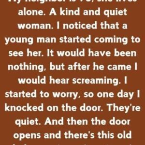 At the age of 78, my neighbor lives alone. A woman of peace and kindness. I noticed that she was being visited by a young man. I…