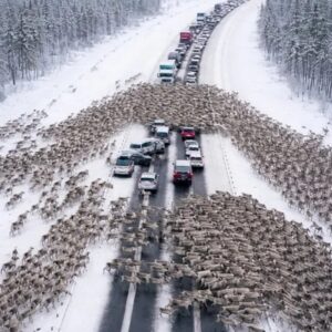 On the highway, drivers became witnesses to a Christmas miracle! thousands of reindeer ran onto the road, instantly creating a massive traffic jam