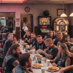 The bell above the diner door didn’t just jingle, it felt like it screamed when they walked in. The whole club, maybe twenty of them, filling every…