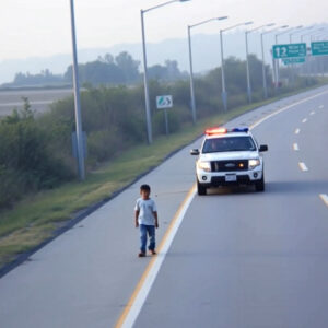A police officer noticed a little boy—no older than three—wandering by himself along the edge