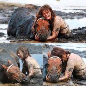 For 3 hours woman stays with trapped horse – then a farmer does everything he can to save its life
