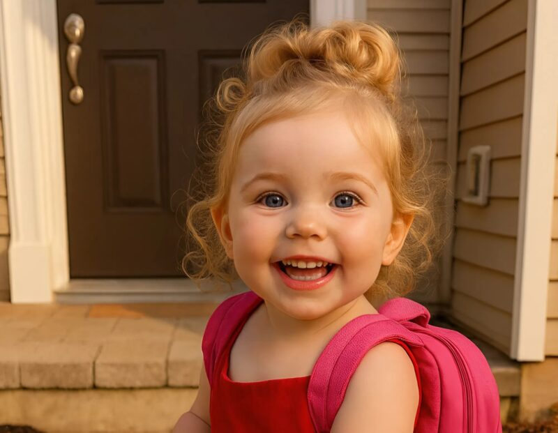 This evening, as soon as I stepped into the yard, I saw a strange sight: my four-year-old daughter was standing right at the doorstep, as if she had been guarding it and waiting for me. She was wearing her little pink backpack, and next to her was the small rolling suitcase we had bought for our trips to the seaside.