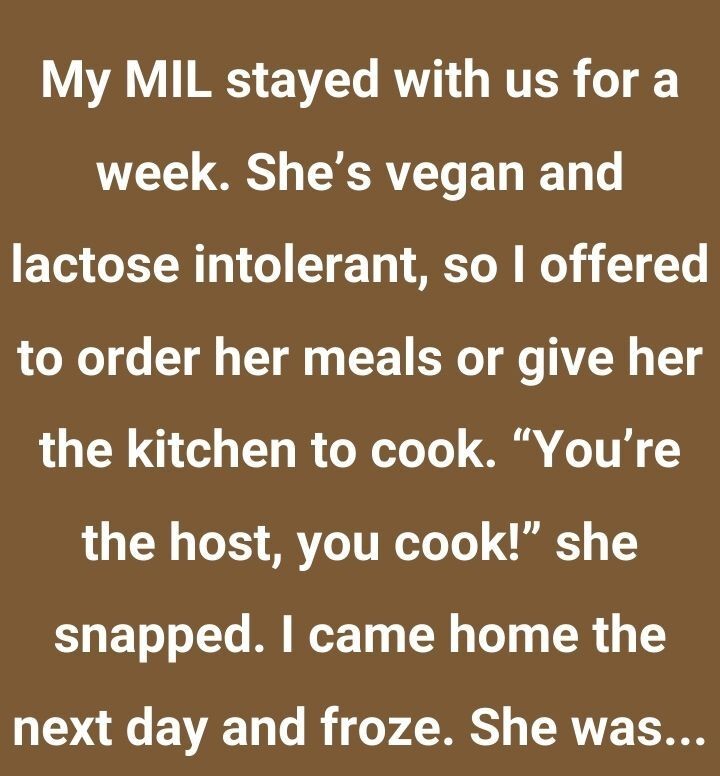 My MIL stayed with us for a week. She’s vegan and lactose intolerant, so I offered to order her meals or give her the kitchen to cook….