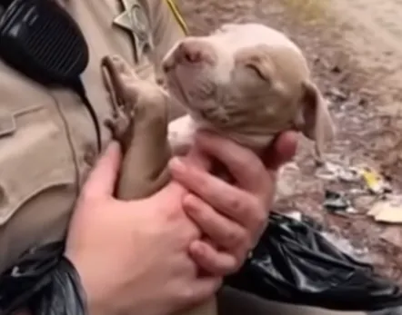 The puppy’s fur was damp, cold, and sticky from the bag’s condensation.